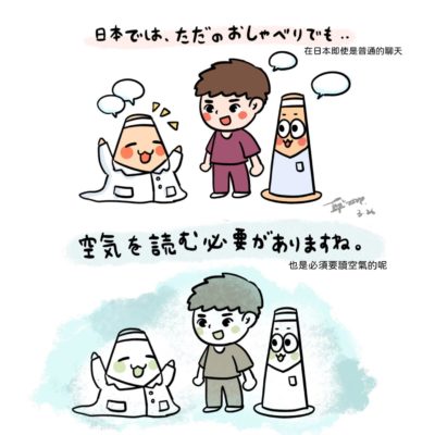 3 月 26 2024 [到日本當路障]讀空氣 剛到日本的時候,感覺所有人都很開朗很有熱情。慢慢的越來越熟悉後,發現周圍的人無時無刻都在「讀空氣」。 日本人講話常常省略許多前後文,需要常常 [到日本當路障]讀空氣 Read More »